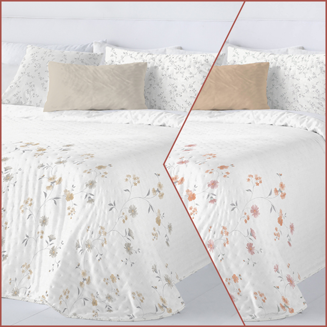Colcha reversible, dos caras diferentes con unos diseños muy cuidados.