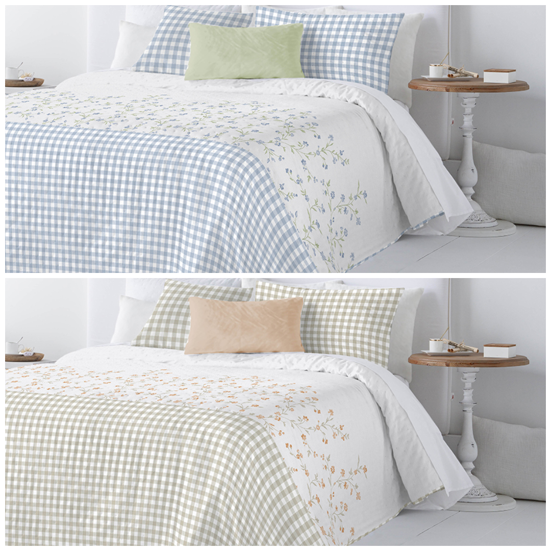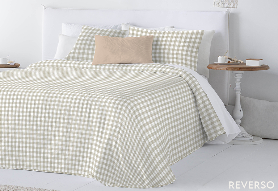 Colcha reversible, dos caras diferentes con unos diseños muy cuidados.