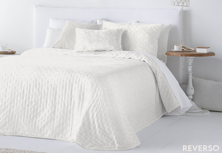 Colcha reversible, dos caras diferentes con unos diseños muy cuidados.
